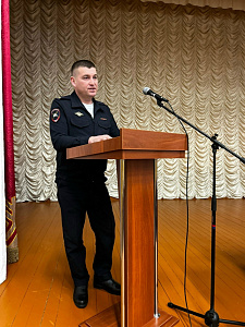Начальник отдела госавтоинспекции Пронюшкин Дмитрий Геннадьевич рассказал о важности соблюдения правил дорожного движения, правилах передвижения в зимний период, мерах профилактики аварий и особое внимание уделил ответственности водителей на дорогах.